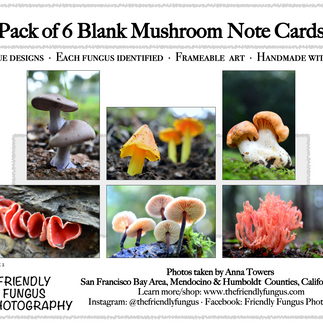 Each heavyweight 5” x 7” note card features one enchanting 4” x 6” California mushroom photograph on the cover